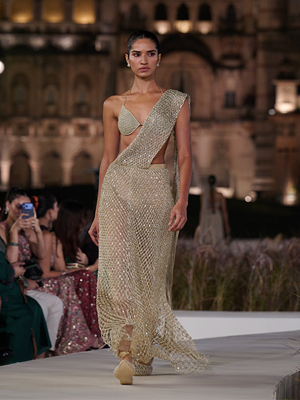 SHOP THE COLLECTION REWILD - FASHION FOR GOOD I have always believed that fashion can be a force for good, and Rewild is our step towards preserving the beautiful planet we all live in. Inspired by the forests of India, this collection brings to life the diverse ecosystems through lush trees, tropical birds & spectacular wildlife.Every detail is a tribute to nature’s poetry & the loving hands that preserve crafts, symbolizing a celebration of harmonious co-existence & conservation.” - Anita Dongre Balancing creativity with responsibility and scale with purpose, Rewild '26 was co-hosted by the Maharani of Baroda, Radhikaraje Gaekwad. Set against the grandeur of the Lukshmi Vilas Palace, we celebrated community, crafts, culture & conservation. All proceeds raised go towards our impact partners Nature Conservation Foundation (NCF), Wildlife Conservation Trust (WCT), Green Tuesday Initiative, Federation of Indian Animal Protection Organisations (FIAPO) & Friendicoes SECA to amplify peaceful co-existence alongside nature & its inhabitants. FRIENDS OF THE WILD Rooted in compassion & co-existence, a community of like-minded people came in solidarity to promote harmony alongside nature & its extraordinary wildlife. BE KIND, REWILD Tablescape: Locally Grown Flowers Mooralala Marwada, 11th-generation Meghwal singer The SEWA Story Craft-infused Couture Homegrown voices with genre-defying music The iconic Lukshmi Vilas Palace of Baroda The Rewild 2026 Collection THE REWILD COLLECTION Crafted with intention and as an ode to indigenous artisans, the lush forests of India are expressed in handcrafted macramé, weaves woven in Benaras, embroidery by the women of SEWA, Gujarat & hand-painted Pichhwai from Rajasthan. Botanical motifs & sights of the wild appear in embroidery, bows, and surface details, while the palette shifted from deep emeralds, midnight blues, and black to ivories, warm golds, and butter yellows reflecting sunlit clearings & picturesque naturescapes, staying deeply connected to the idea of co-existence and rewilding. THE BEAUTY OF MACRAMÉ Inspired by the roots of trees & dew-dipped gossamers found in the forest. Each knot is lovingly crafted by hands that preserve the craft & reimagine it for modern times. EXPLORE MACRAMÉ SUMMERFERN EMBROIDERED APPLIQUE SILK CO-ORD - GOLD 17,810 AED SUMMERFERN EMBROIDERED APPLIQUE SILK PANT SET - GOLD 12,440 AED INSPIRED BY FORESTS IN INDIA A HARMONIOUS CO-EXISTENCE HANDCRAFTED COUTURE A CELEBRATION OF INDIGENOUS CRAFTS FASHION FOR GOOD BE KIND, REWILD Kimbra Macrame Pre-draped Saree - Gold 16,560 AED Nozomi Woven Benarasi Skirt Set - Black 3,440 AED Masara Handwoven Benarasi Silk Skirt Set - Green 8,130 AED Nozomi Woven Benarasi Gown - Black 3,440 AED Ophrys Embroidered Macrame Gown - Gold 6,880 AED Lucinda Macrame Gown - Gold 7,810 AED Zephyria Applique & Embroidered Cord Pant Set - Gold 6,880 AED Zephyria Applique & Embroidered Cord Skirt Set - Gold 6,880 AED Summerfern Embroidered Applique Silk Co-ord - Gold 17,810 AED Meadowfern Embroidered Skirt Set - Ivory 17,190 AED SHOP THE COLLECTION RUNWAY LOOKS SEE MORE THE REWILD ALBUM Composed in collaboration with Gaurav Raina, Komorebi & Karsh Kale, the Rewild album mirrors the Indo-Saracenic architecture of Lukshmi Vilas Palace & our craft-infused couture collection. Featuring Mooralala Marwada, the 11th-generation Meghwal singer, meeting the rhythmic intensity of Raja Kumari’s rap. Joined by Monica Dogra’s nuanced & shape-shifting voice with Apeksha Dandekar’s captivating & sonorous vocal. LISTEN Tracking Consent This site uses cookies to simplify and improve your usage and experience of this website. cookies are small text files stored on the device you are using to access this website. if you ignore this message and continue without changing your browser settings, we will assume that you are consenting to our use of cookies. For further information on use of cookies, please see our Privacy Statement. Yes No